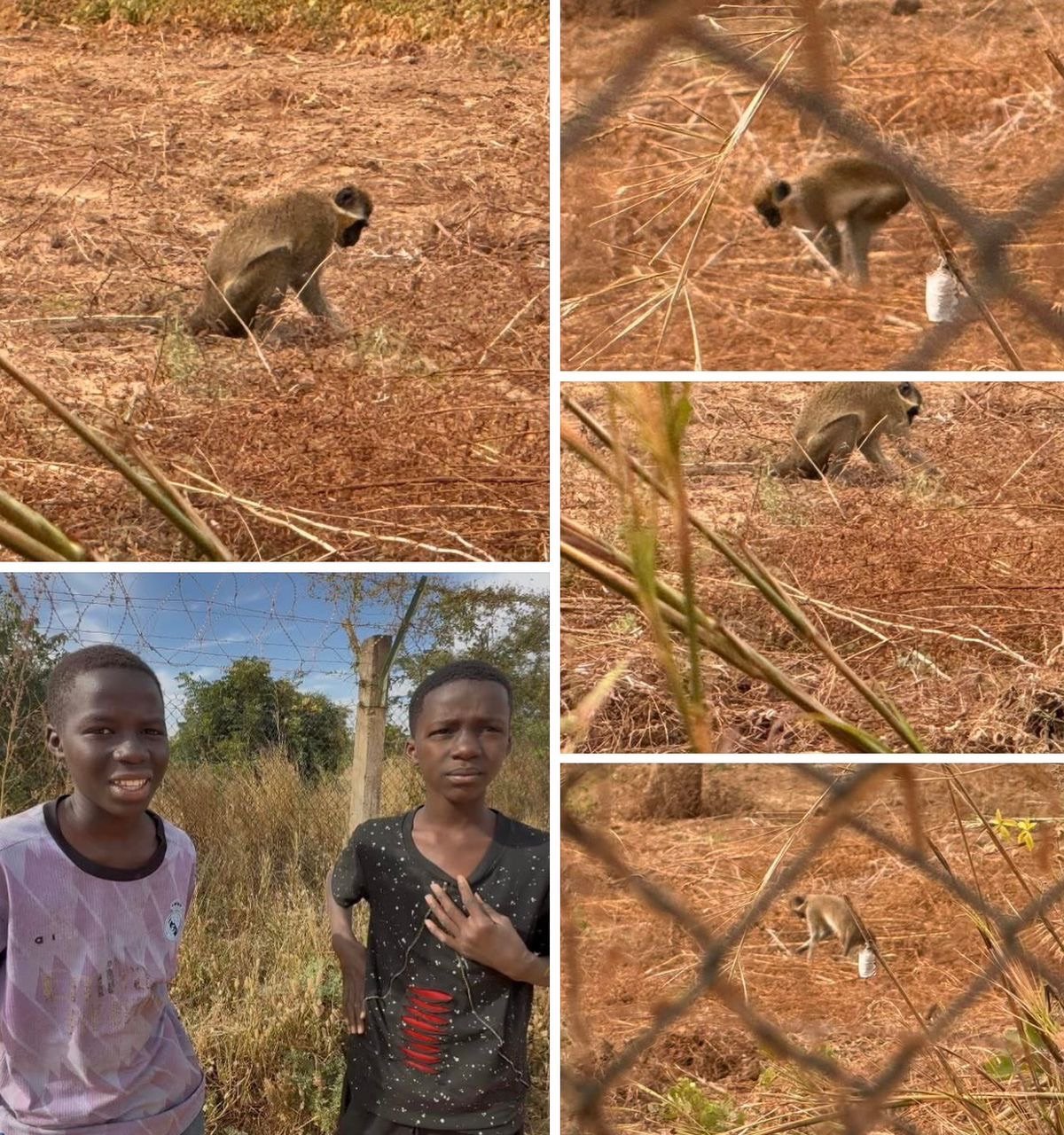 Derrière les barrières du camp, des singes apparaissent, se déplacent entre les arbres et les champs. Le doute n’est plus permis. Photos et vidéos viennent confirmer la scène.
