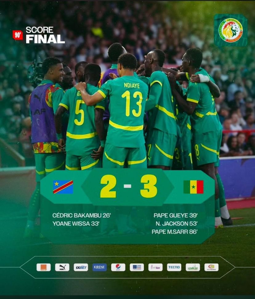 Le Sénégal a signé une victoire de prestige ce mardi au stade des Martyrs en renversant la République Démocratique du Congo (3-2), après avoir été mené 2-0.